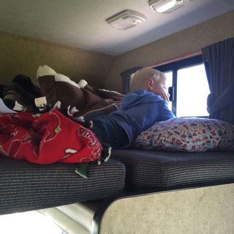 We're back on the road and almost to Uncle Jim and Aunt Cindy's house. Hunter has been looking hard to find those mountains. We haven't seen them yet...
